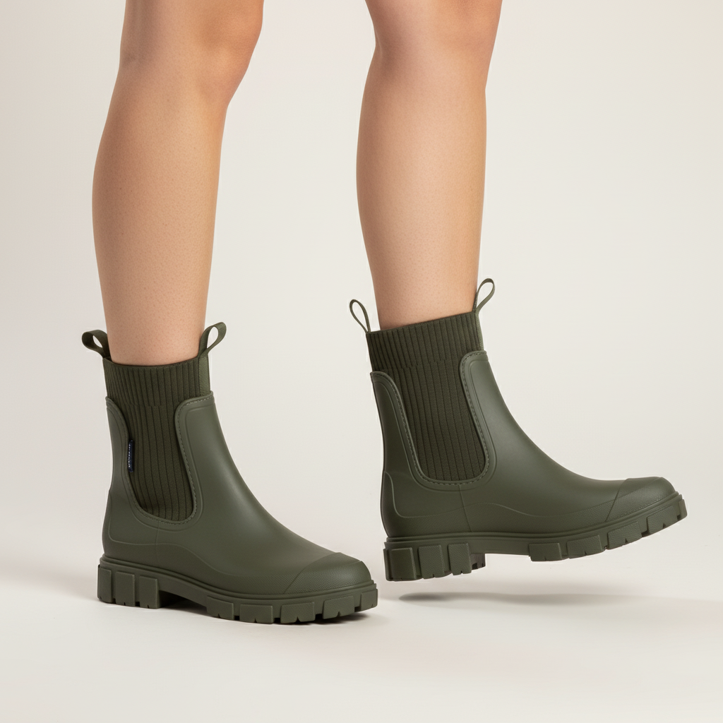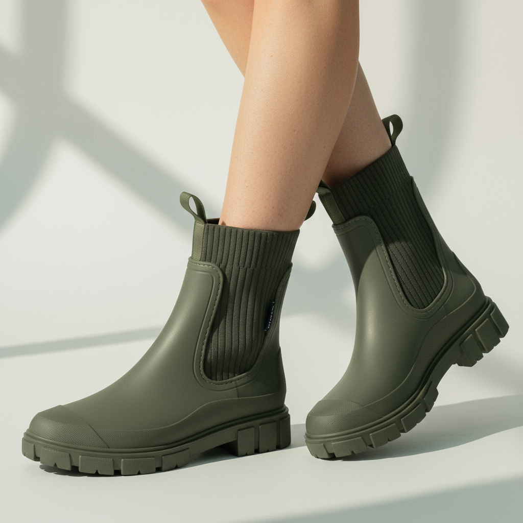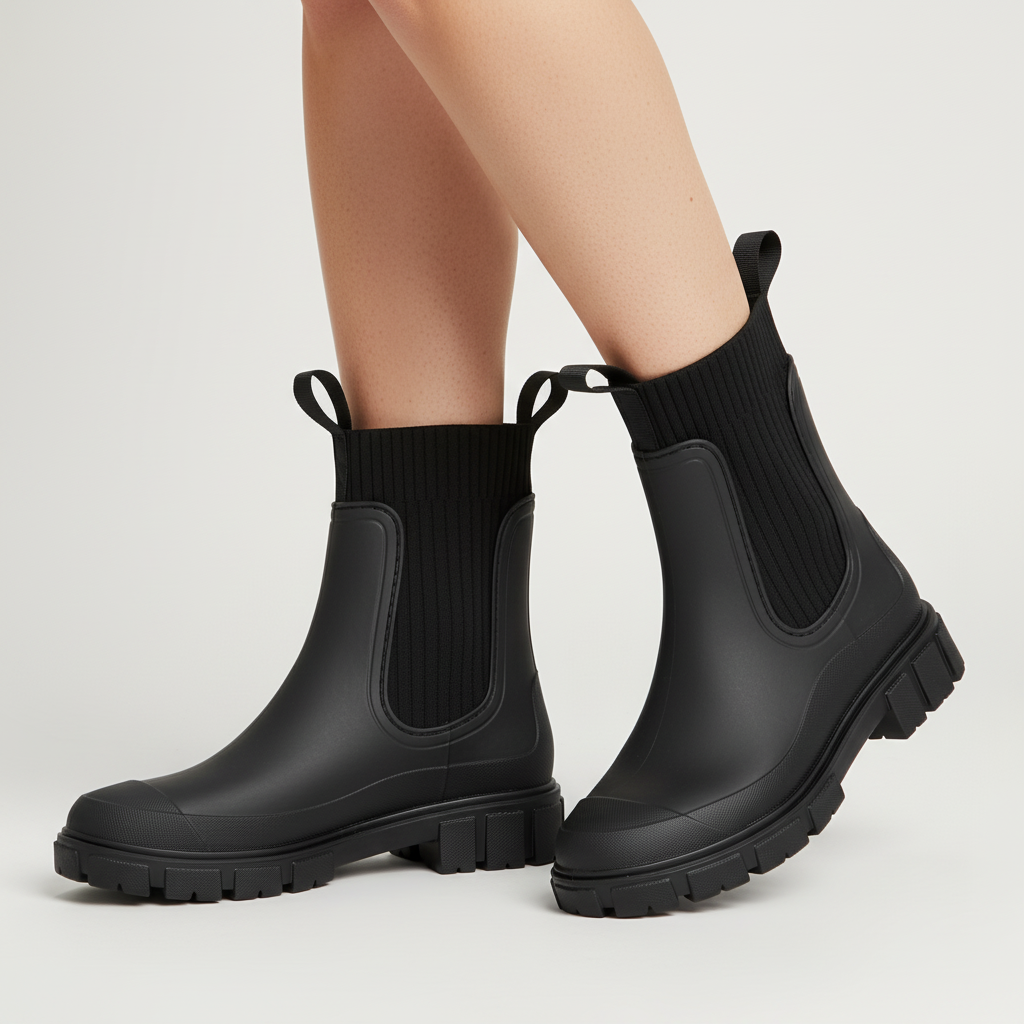 Deze stijlvolle regenlaarzen combineren functionaliteit met een moderne uitstraling. Het Chelsea-design met elastische inzetstukken en handige treklussen zorgt ervoor dat je ze gemakkelijk aan- en uittrekt. De grove zool biedt extra grip en stabiliteit, ideaal voor regenachtige dagen of natte ondergronden. Dankzij het waterdichte materiaal blijven je voeten droog, terwijl de comfortabele pasvorm ze geschikt maakt voor dagelijks gebruik. Perfect te combineren met zowel casual outfits als een meer modieuze look.