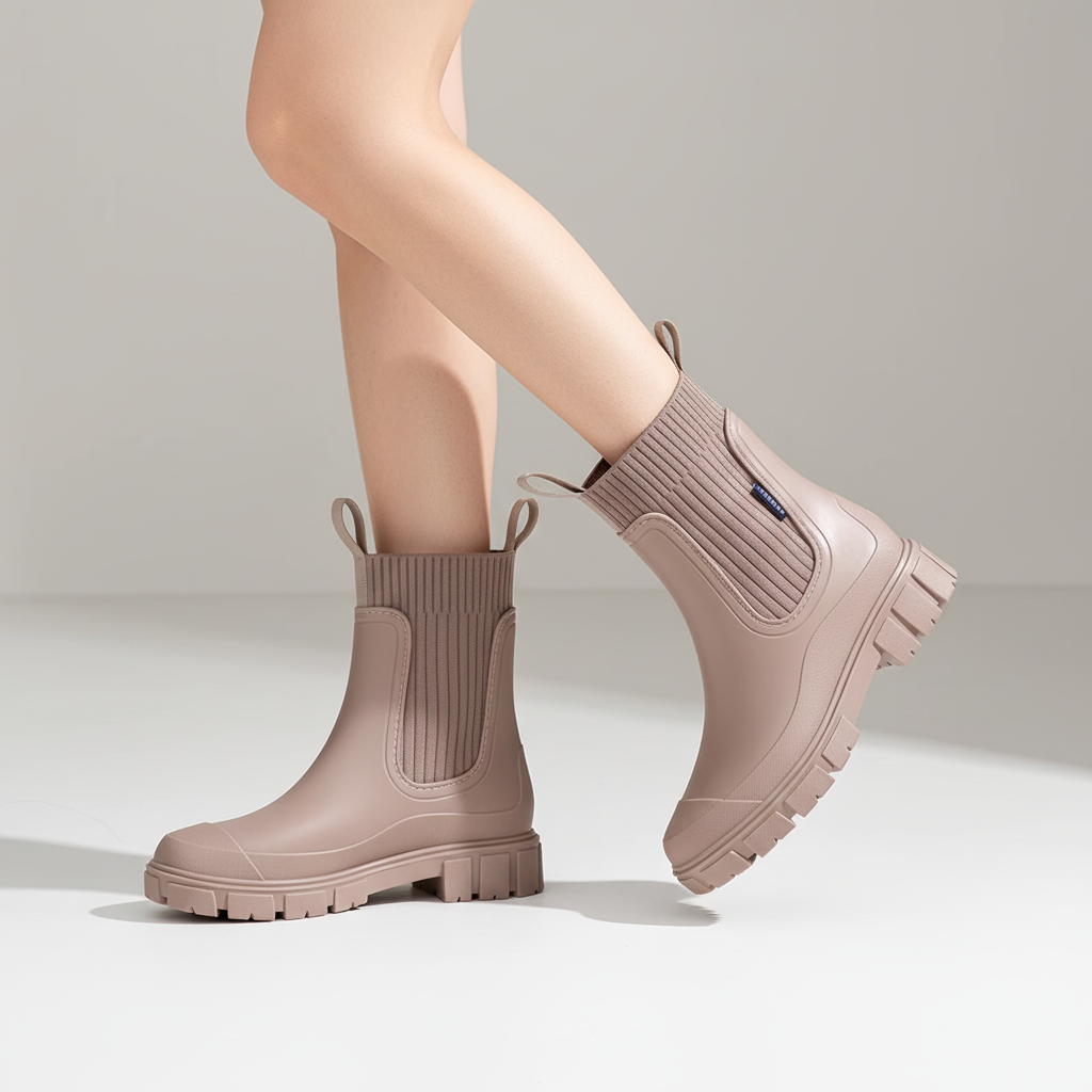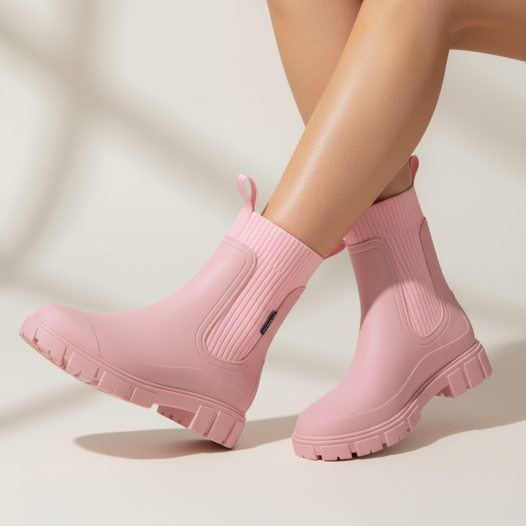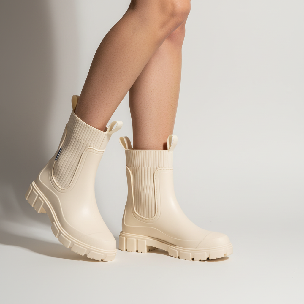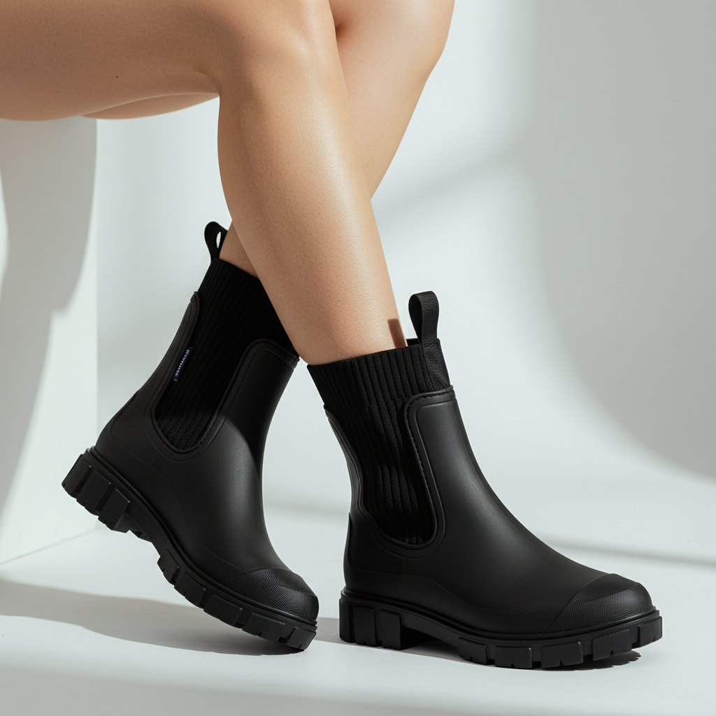 Deze stijlvolle regenlaarzen combineren functionaliteit met een moderne uitstraling. Het Chelsea-design met elastische inzetstukken en handige treklussen zorgt ervoor dat je ze gemakkelijk aan- en uittrekt. De grove zool biedt extra grip en stabiliteit, ideaal voor regenachtige dagen of natte ondergronden. Dankzij het waterdichte materiaal blijven je voeten droog, terwijl de comfortabele pasvorm ze geschikt maakt voor dagelijks gebruik. Perfect te combineren met zowel casual outfits als een meer modieuze look.